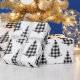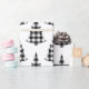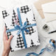 Búfalos brancos e negros bonitos verificam papel de embrulho de Natal e feriado. Padrão russo e country.