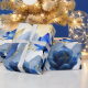 Faça seus presentes especiais com este elegante papel de embrulho floral azul. As vibrantes flores azuis e ouros criam um aspecto luxuoso e sofisticado. Perfeito para qualquer ocasião, este papel de embrulho adiciona um toque de elegância aos seus presentes.