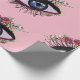 Desenho de olhos azuis e flores, embrulho especial de fundo de cor personalizado.
