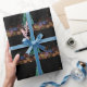 Uma árvore de Natal alta e luzes de férias brilhantes decoram este papel de embrulho alegre. Faça sorrisos de férias para aquela pessoa especial, com este papel festivo de férias.