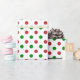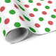 Um papel de embalagem de Natal construído com um padrão de bolinhas vermelho e verde sobre um fundo branco. Personalize o fundo branco entre outras opções.