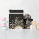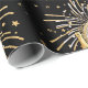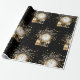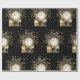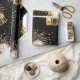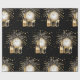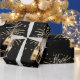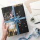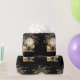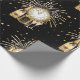 Véspera de Ano Novo ou presente de festa de Dia do ano novo embrulhado com ouro a preto, com um relógio pronto para greve à meia-noite, champanhe e presente. Ofereça aos seus convidados do partido ou a sua outra significativa com algo especial para celebrar o próximo ano. Dourado, preto, brilho dourado.