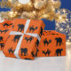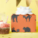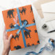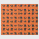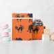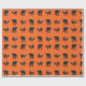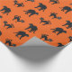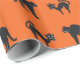 Gatos Pretos em papel de embrulho de Halloween de fundo laranja.