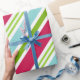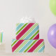 O vermelho-escuro, o aqua e as listras de verde limão decoram este papel festivo de embrulho de Natal. Este papel de embrulho divertido é excelente para meninas, meninos, adolescentes, mulheres, homens, crianças, etc... O design é de arte original.