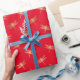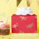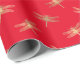 Este papel de embrulho apresenta um padrão moderno de libélula de folha de ouro falso sobre fundo vermelho.