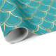 Este papel de embrulho apresenta um padrão elegante de escala de folha de ouro falso em fundo lacado.