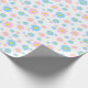 Este belo papel de embrulho personalizado apresenta um padrão de margarida azul-claro e rosa, em fundo branco, perfeito para Dia de as mães ou qualquer outra ocasião.