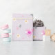 Padrão sem costura com flores pastel e texto "Hi Primavera" sobre fundo de lavanda macio