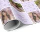 Esta lavanda personalizada Quinceañera embrulhando papel é uma bela maneira de apresentar um presente especial. Ele apresenta um padrão moderno, em série, que combina duas fotos da aniversariante, seu aniversário e nome. O esquema de cores lavanda e lilás fornece um pano de fundo macio e elegante, enquanto os desenhos encantadores estilo escrivado de coroas, borboletas e flores e o texto "Mis Quince años" adicionam um toque de capricho. É o detalhe perfeito e personalizado para tornar seu presente Quinceañera ainda mais memorável.