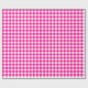 Um papel de embalagem projetado com um padrão de xadrez rosa e branco quente. Personalize o fundo branco entre outras opções.
