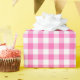 Um papel de embalagem projetado com um padrão de xadrez de verificação de cor rosa e branca. Personalize o fundo branco entre outras opções.