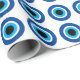 Papel de embrulho com símbolo Mau azul Mati. Símbolo grego/turco azul para proteção e boa sorte. O presente de moda embrulha ideias para festa de casamento, Aniversário e muito mais.