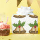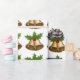 Papel de embrulho de Natal com um padrão gráfico de sinos de Natal com cola oca no topo.