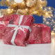 Bonito elementos florais pintados a branco num pano de fundo com diferentes cores vermelhas.