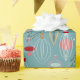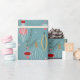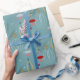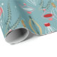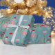 Condecorações geométricas de árvores de Natal em ouro, vermelho, rosa, creme e azul para enrolar seus presentes divertidos para os feriados. Design de papel original por TR Forsman para www.zazzle.com/space_tempo_design Bolbos contemporâneos, charmosos e bonito com galhos sobre fundo azul-neve.