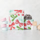 O arco de Natal de moda embrulhando papel em cores verde, vermelho, azul e rosa.