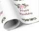 Papel de embrulho personalizado apresenta magnólias cor-de-rosa e verde. Altere o texto para se adequar ao evento especial.