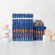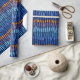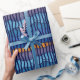 Arte digital repetindo padrão de ouro e vários tons de linhas e listras abstrato azuis, estilizados para a estação de Chanucá.