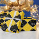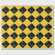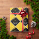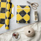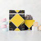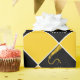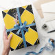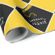 Embrulhamento de presente de graduação e decoração de festas exclusivos com parabéns, boné de formatura preto e design de tassel de ouro em fundo amarelo. Editar texto para adicionar o nome do formando do mais velho.