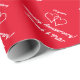 Papel de embrulho de aniversário de casamento personalizado para o casal. Embalagem para brindes de cor vermelha ou personalizada para marido e mulher casados 1 5 10 25 40 50 anos. Design romântico com dois corações amorosos interligados. O coração duplo intertravou-se entre si.