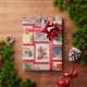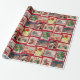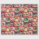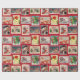 Este papel colorido de embrulho de Natal tem 8 bonitos cartões postais de natais vintages dispostos sobre um fundo festivo e vermelho com flocos de neve. Compartilhe imagens de férias bonitas e vintage com seus amigos e família.