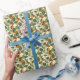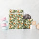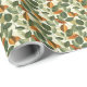Papel bonito de presente de design de folha em verde e laranjas.