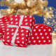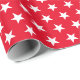 O papel de enrolamento é mostrado em um impressão de estrelas brancas e vermelhas. Personalize este papel ou apenas o comprar como está.