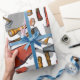 Padrão de acampamento com tenda, machado, lanterna, e mais. Encoraje seus amigos e familiares a saírem e encontrarem aventura enquanto dão presentes.