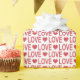 Um papel de embrulho construído com um padrão de amor em vermelho. Personalize o fundo branco de uma maneira fácil.