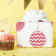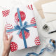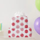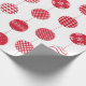 Um papel de embrulho com uma bola de Natal vermelha e branca em grande tamanho. Personalize o tamanho do padrão, a cor de fundo entre outras opções.