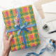 Um padrão verde, vermelho e cintilante de natal branco no papel de embrulho.