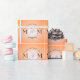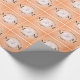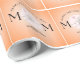 O design de papel de embrulho na imagem tem um fundo cor de laranja-pêssego com um padrão repetitivo. Cada seção do padrão inclui a palavra "MOM" em uma fonte ousada e elegante. O "O" em "MOM" é estilizado como um emblema circular que apresenta uma imagem desenhada à mão de uma flor e o texto "Feliz Dia das Mães" acima dela. Abaixo do círculo, ele diz "Você é o melhor" em fontes menores. O design está alinhado de forma uniforme em um layout semelhante a grade, dando a ele uma aparência limpa e moderna.