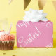Bonito papel de embrulho de Páscoa rosa-primavera. Um rosa alegre e alegre com um roteiro branco de "Felz pascoa".