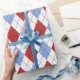 Papel de empacotamento elegante para casamentos, aniversários e mais com um padrão de estilo vermelho e azul. Este belo papel de embrulho pode ser usado para homens, mulheres e crianças.