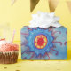 Tanto a mandala azul, vermelha como a amarela forma papel de embrulho de design de padrão pintado manualmente para presente especial.