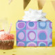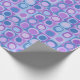 papel de empacotamento em padrão repetitivo de quadrados e bolhas de abstrato, tons de cor azul e lavanda