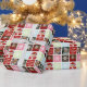 Colagem de fotos Feriado 4 com papel de embrulhamento de presente de molde de fotos em flocos de neve de texto personalizado, adicione sua própria foto e enrole seus presentes em estilo. Clique em personalizá-la para mover sua foto para cima, para baixo, para a direita ou para a esquerda usando os quatro ícones de seta