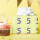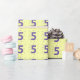 É hora de celebrar os 5 anos! O número cinco é pintado em roxo e tem pistas encaracoladas ao seu redor. É repetido em padrão e impresso sobre fundo amarelo, sobre papel de embrulho. A cor de fundo pode ser personalizada.