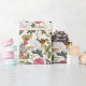 Este design de papel de embrulho em forma de vinheta apresenta borboletas botânicas e pássaros com flores e fruta em cores cor rosa, amarela, azul, verde e marrom em um marfim, antigo fundo texturizado em papel. Excelente para artesanatos de papel e também faz um invólucro elegante para presentes. Projetado por © Tim Coffey.