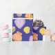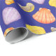 Celebrar ocasiões especiais com este papel de embrulho que apresenta um padrão colorido de conchas vermelhas, amarelas e violetas em aquarela em fundo azul. Traga a alegria do verão para a festa com este tema marinho ou use-a para um presente para amigos que amam a praia.