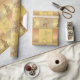 Este papel de embrulho apresenta uma imagem brilhante e estilizada de uma árvore de Natal acompanhada do texto "Felizes Feriados". O fundo é constituído por azulejos quadrados concebidos em matizes de ouro e rosa.