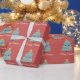 Um papel de enrolar vermelho com uma árvore de Natal kawaii. Será perfeito para enrolar seus presentes, especialmente os presentes de seus filhos!