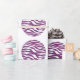 Papel de moldagem para Bolinhas de impressão Zebra, bonitão e tenda. Esta design apresenta círculos de padrão de impressão de zebra divertida em roxo e branco. O texto pode ser adicionado a esta design para lhe dar um toque pessoal.