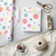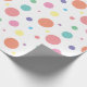 Papel de embrulhamento de temas de bolinhas divertida. Livro branco com bolinhas coloridas espalhadas como confetti. Uma camada extra de alegria para o seu dom perfeito.
