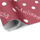 Nome de texto curvo personalizado com fundo impressão de padrão de bolinhas de branco em cor vermelha de vinho bonito. Folha de presente de excelente aniversário para mulheres, meninas ou qualquer senhora!