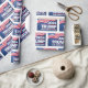 Celebre a estação com este papel de embrulho de Trump festivo. Apresentando as palavras Trump 2024 Take America Back com um fundo azul marinho com estrelas e a bandeira americana.