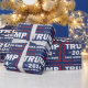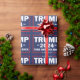 Celebre a estação com este papel de embrulho de Trump festivo. Apresentando as palavras Trump 2024 Take America Back com um fundo azul marinho, estrelas brancas e borda vermelha.