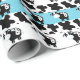 Papel de embalagem de vacas azuis, adorável, concebido para coordenar com os artigos temáticos do nosso chá de fraldas de vacas leiteiras, mas que também pode ser utilizado para um aniversário de vacas pequenas ou para qualquer evento com vacas ou animais de criação bonitos.