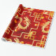 Este espantoso papel de embrulho de casamento em vermelho brilhante e ouro com um dragão elegante traz boa sorte e beleza elegante para o seu evento.