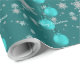 Adicione um toque festivo aos seus presentes de Natal com este Papel de enrolação de Enfeites de natal Teais. Mostrando Enfeites de natal brilhantes e balas penduradas adornadas com fitas e arcos, a design é aspergida com delicados flocos brancos de neve para um tema mágico de feriado no inverno. Uma graciosa saudação de Feliz Natal em um roteiro elegante completa o olhar, criando um tema de inverno eterno perfeito para qualquer presente. Um encantador fornecimento de presentes de férias para tornar seus pacotes tão especiais quanto o que é dentro.